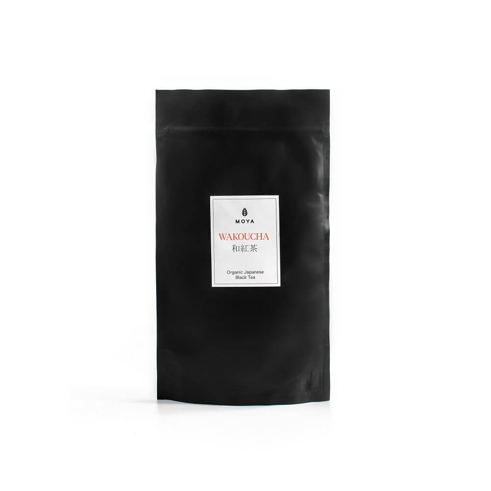 De smaak van deze zwarte bladthee is verfijnd, delicaat bloemig met een merkbaar honingzoete en kruidige noot. Het woord “kou-cha” 紅茶 betekent “paarse thee”. De Wakoucha dankt zijn naam aan het zachte Japanse water dat de theeblaadjes kleurt in een donkerrode tint met een vleugje blauw. Dit is ook de reden waarom het vroeger rode thee werd genoemd. Wanneer gezet met water van gemiddelde hardheid, zoals typisch is in Europese landen, krijgt Wakoucha-thee een intense donkere amberkleur. Moya Wakoucha komt uit de regio Mie op het eiland Honshū.